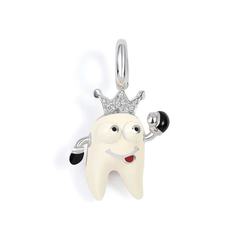 18K Tooth Fairy Charm with Diamond Crown; .02ct.