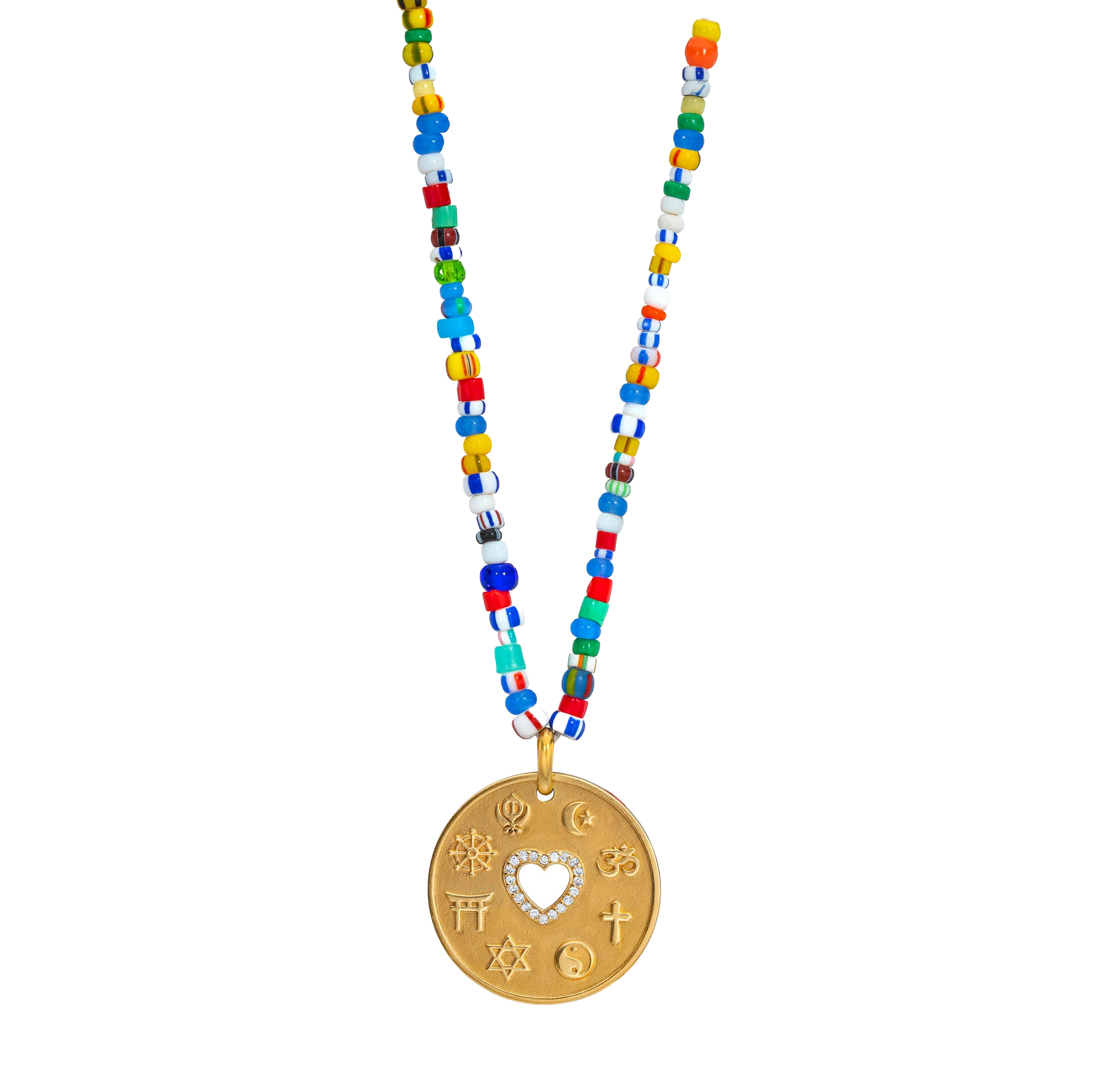 Love Is My Religion Yellow Gold on Colorful Beaded Chain