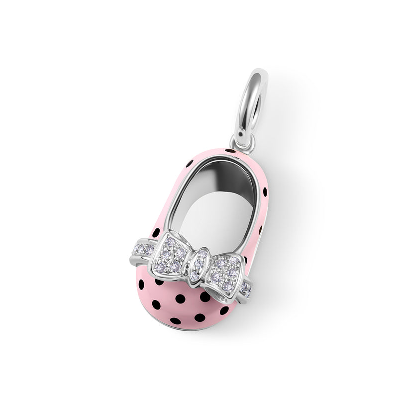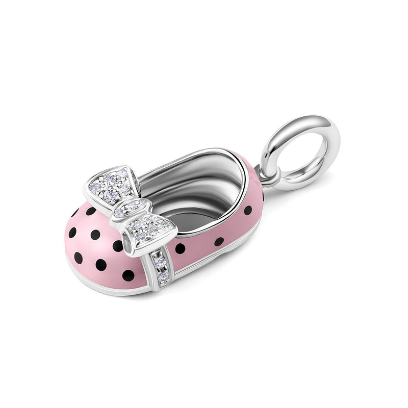 Celebrate the beautiful baby girl in your life with a signature Girl Baby Shoe Charm handcrafted by Aaron Basha, add this polka dot-enameled yellow gold baby shoe for additional joy to your jewelry.