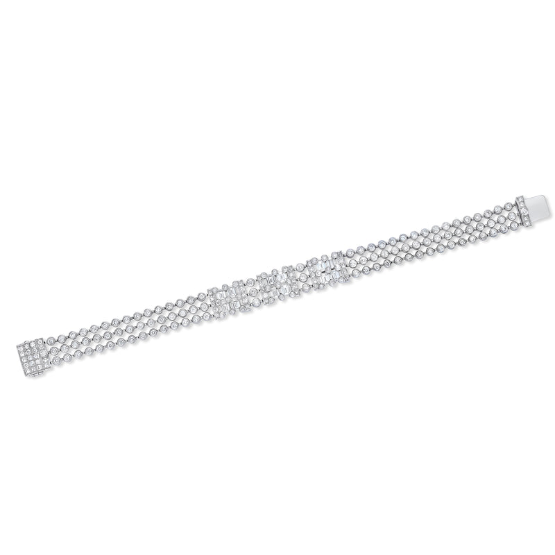 TWO TIER PLATINUM EMERALD CUT DIAMOND PLATINUM BRACELET, 40 EMERALD CUT DIAMONDS 14 CT TW