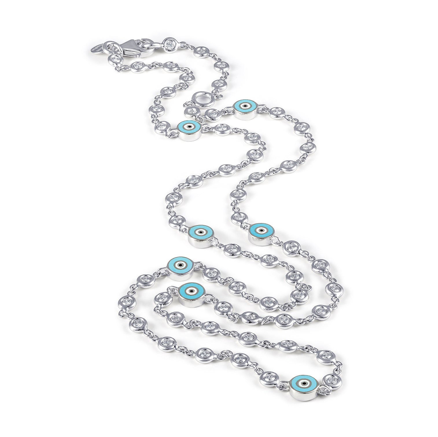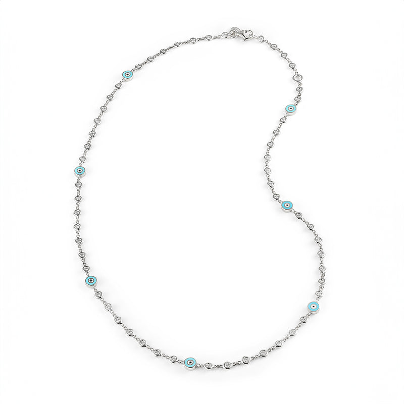 18K White Gold All Diamond Necklace with Light Blue Eyes